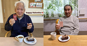 バレンタイン特別メニューで男性入居者様の3時のおやつに“チョコケーキ”