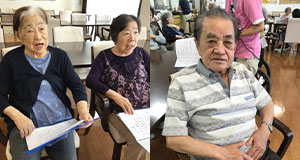 皆様、音楽が流れる中の運動に笑顔も見られてました。