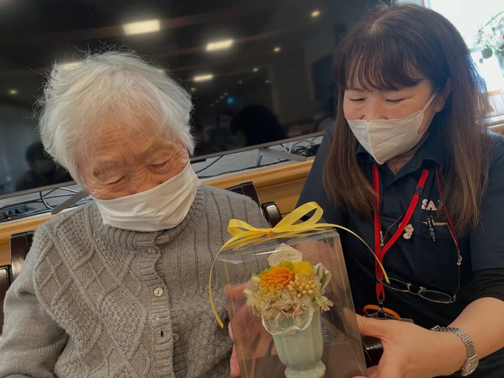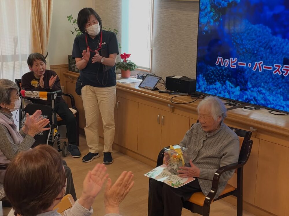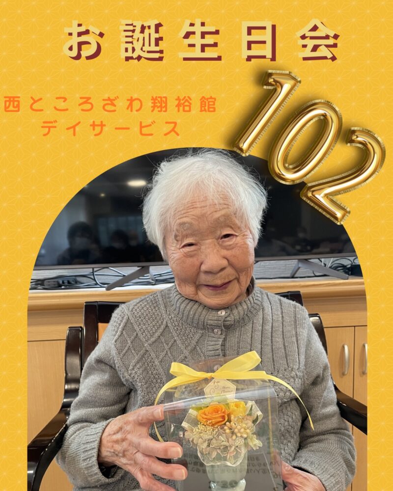 先日、102歳の誕生日を迎えるご利用者様のお誕生日会を開きました!