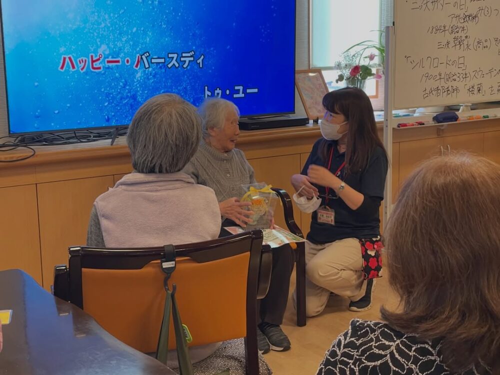 皆で歌い、職員一同よりプレゼントを贈らせていただきました。