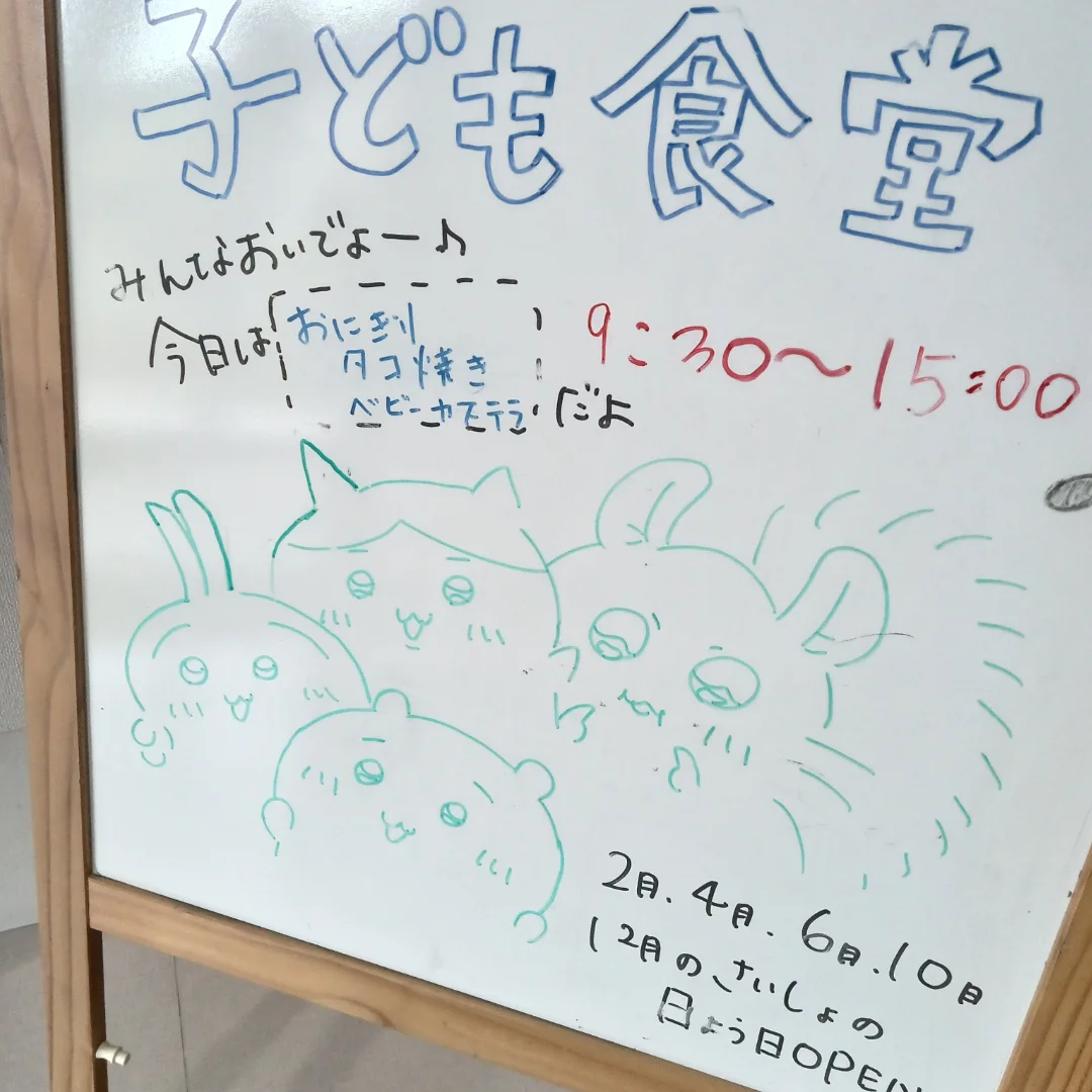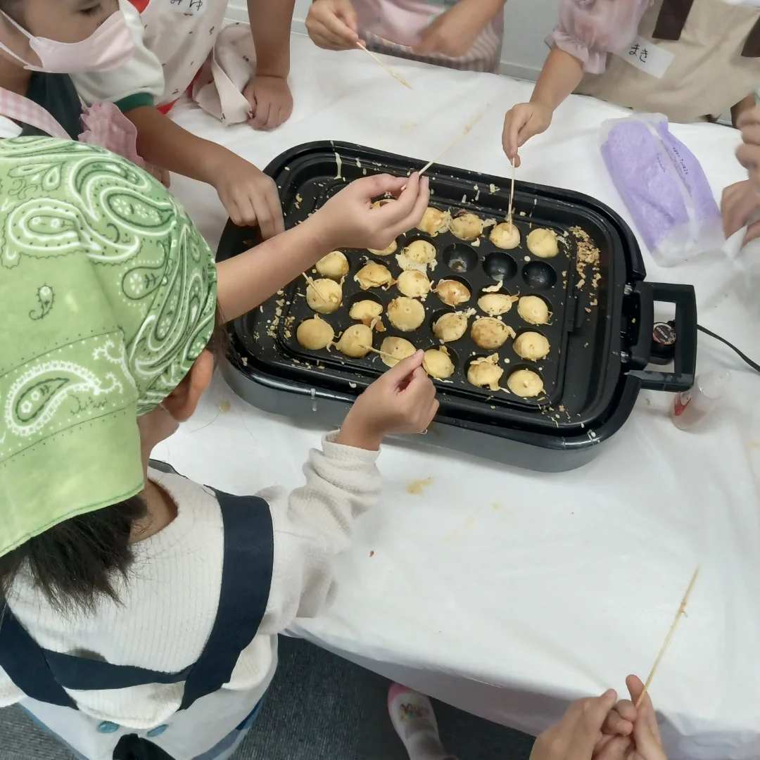メニューは、たこ(ウインナー+ホールコーン付)焼きと、おにぎり&デザートに、フルーツをトッピングしたベビーカステラパフェの豪華バージョン!