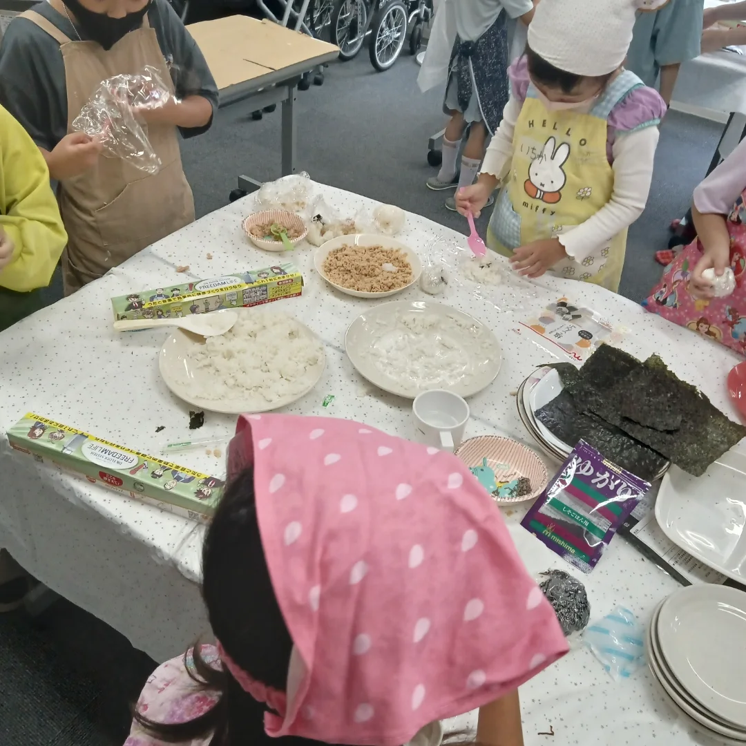 おにぎりは、自分たちで好きな具材(昆布・鮭・ツナ)を選んで握ってもらいました