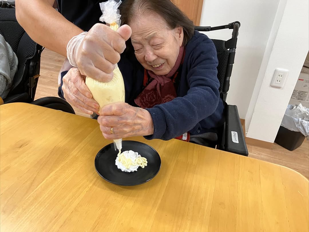 本日は11月のお誕生日会を開催させていただきました♪ さつまいものモンブランを作りました。 甘さ控えめで美味しいと好評でした。