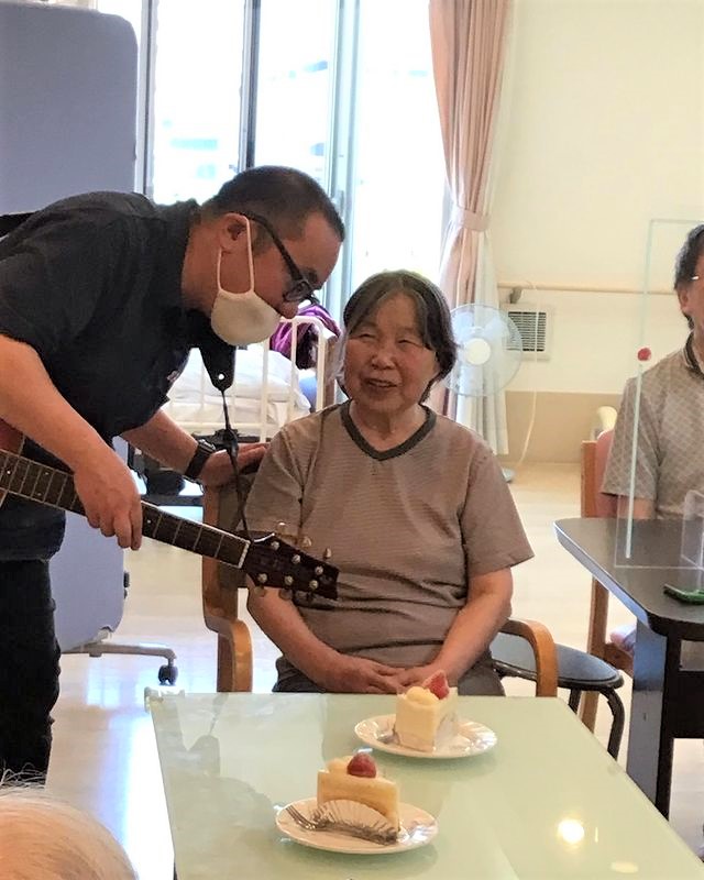 皆さんで歌をうたいケーキを召し上がっていただきました。