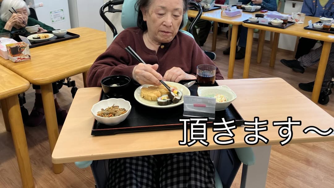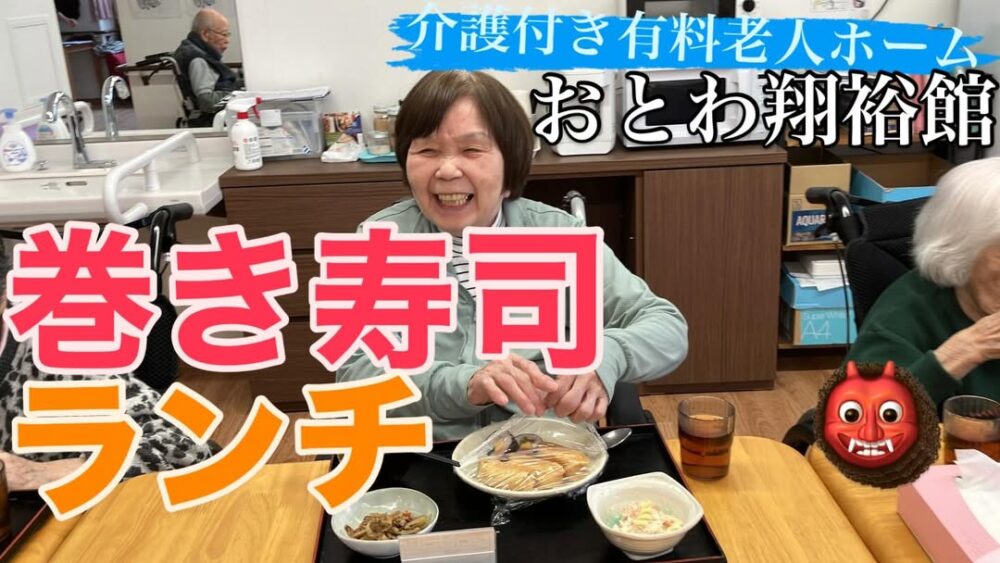 介護付き有料老人ホームおとわ翔裕館 おとわグループホーム 2月3日の昼食は巻き寿司でした〜 具沢山の巻き寿司ランチでお腹も心も満たされました