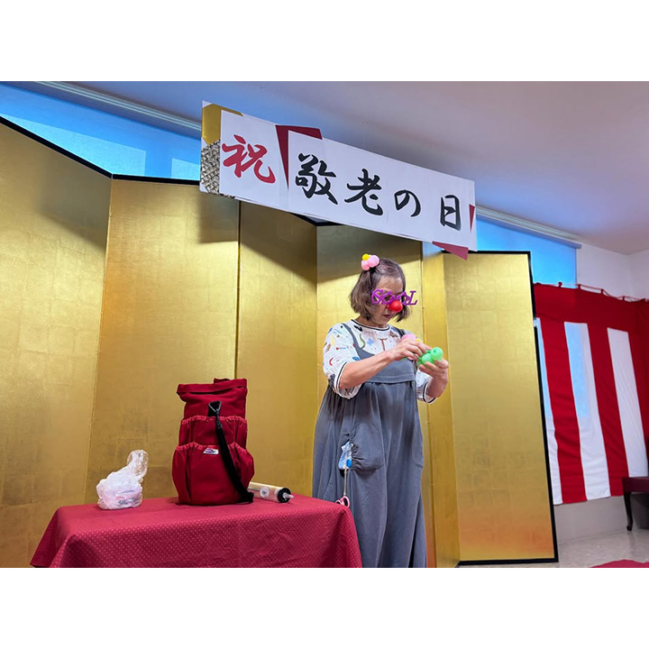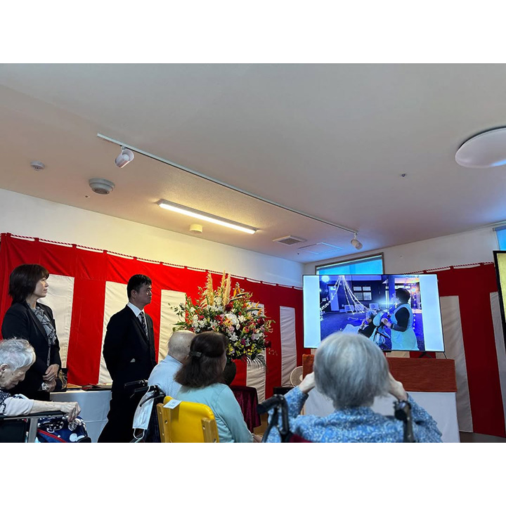 ご祝辞、職員による余興、バルーンアート、スライドショー