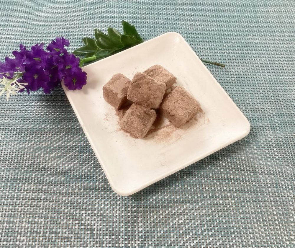 とろける食感で、口当たり良く、ココアパウダーの苦味がほんのりあり、皆様美味しいと完食でした