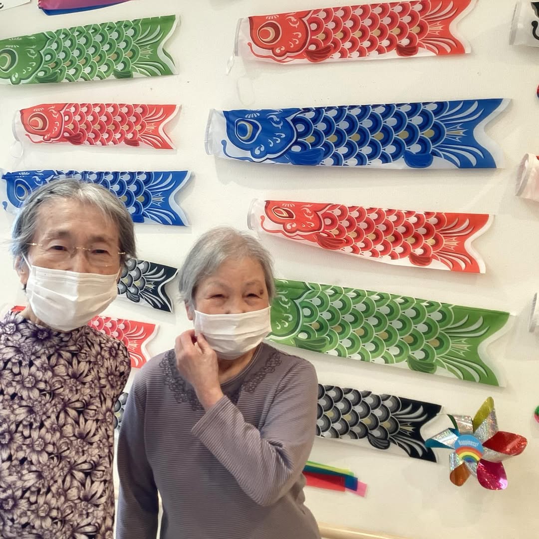 実はこの鯉のぼり、利用者様と一緒に飾っています