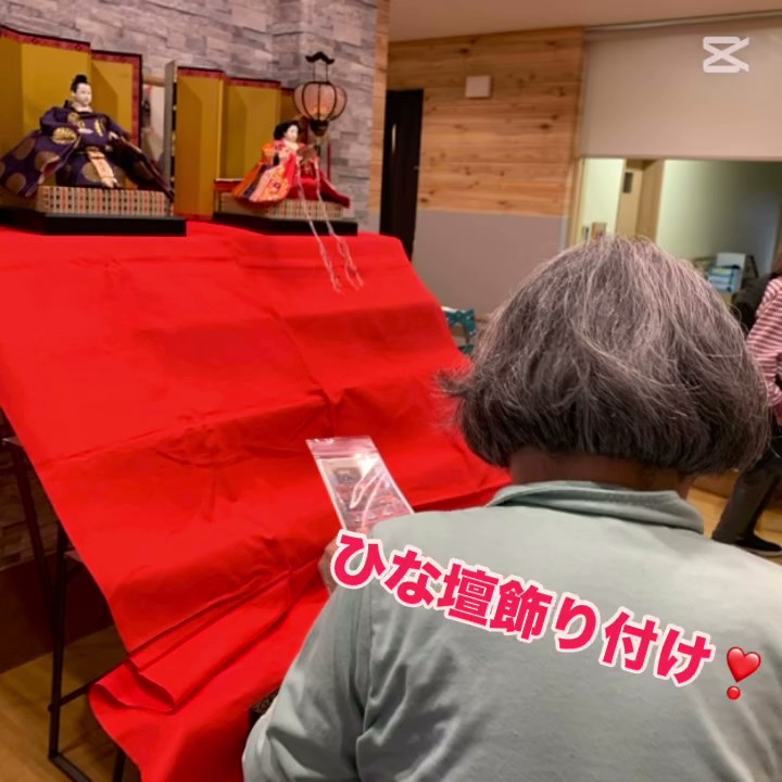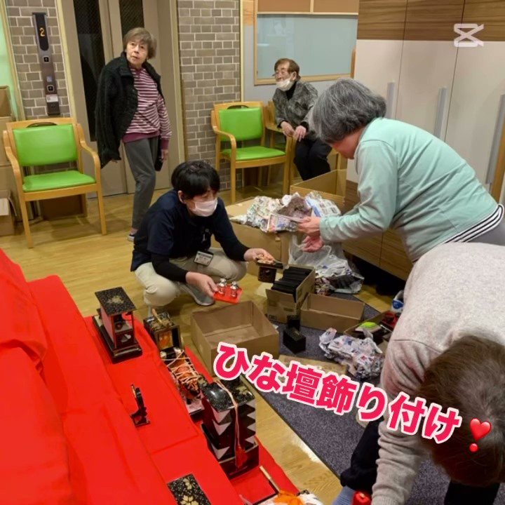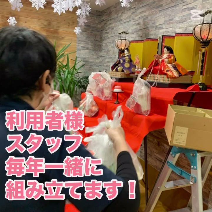 皆さんで一緒になって雛人形飾りを致しました(*^▽^*)