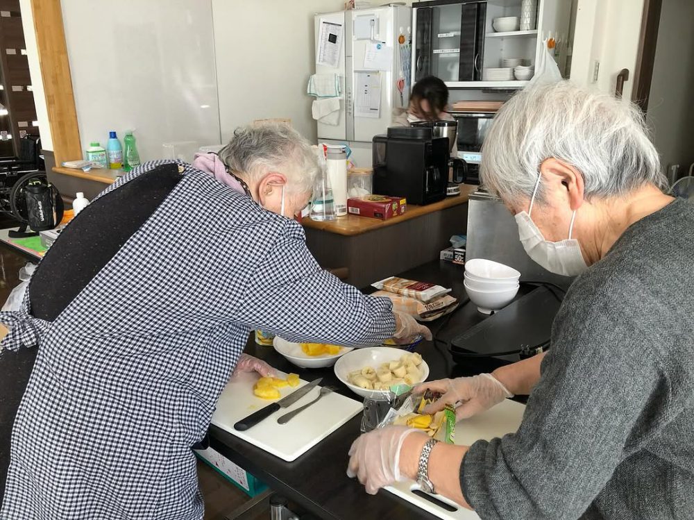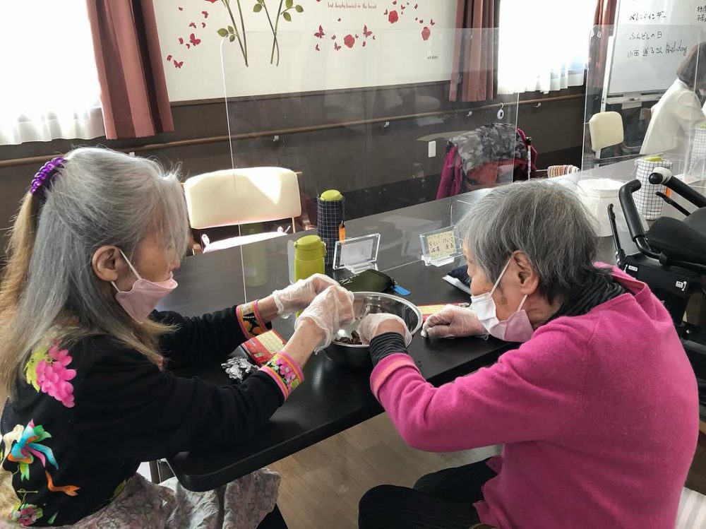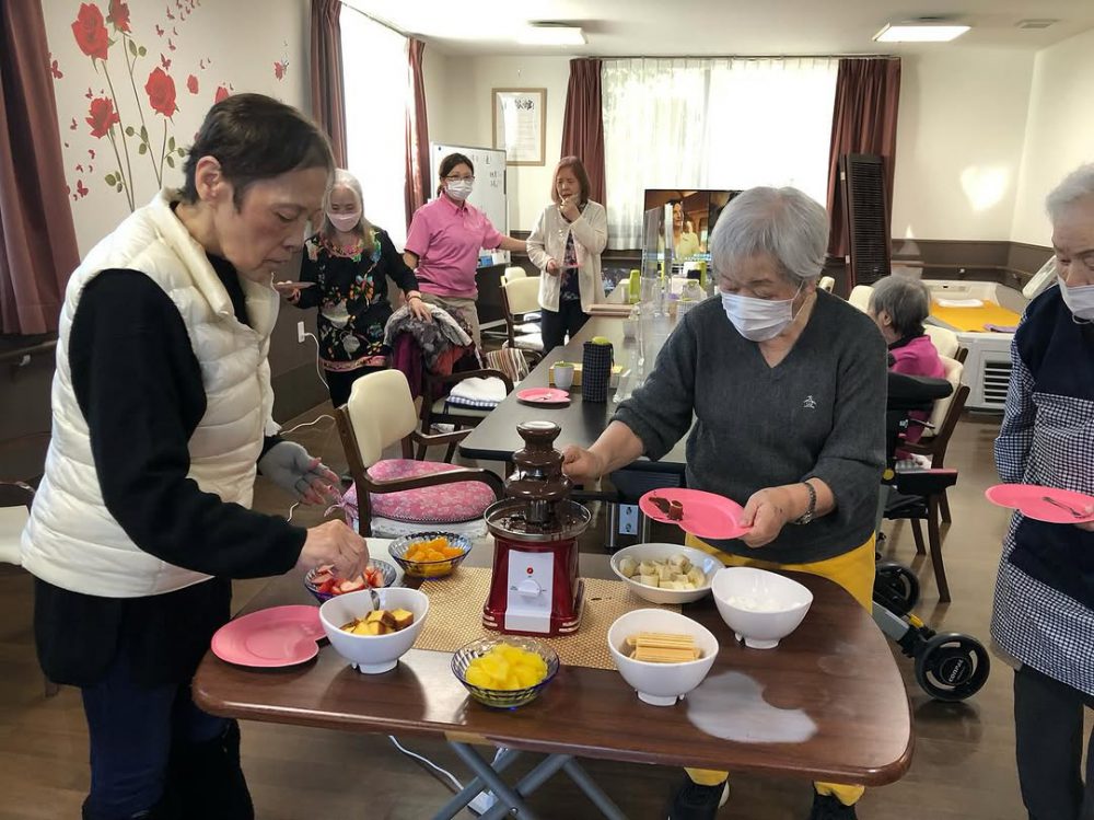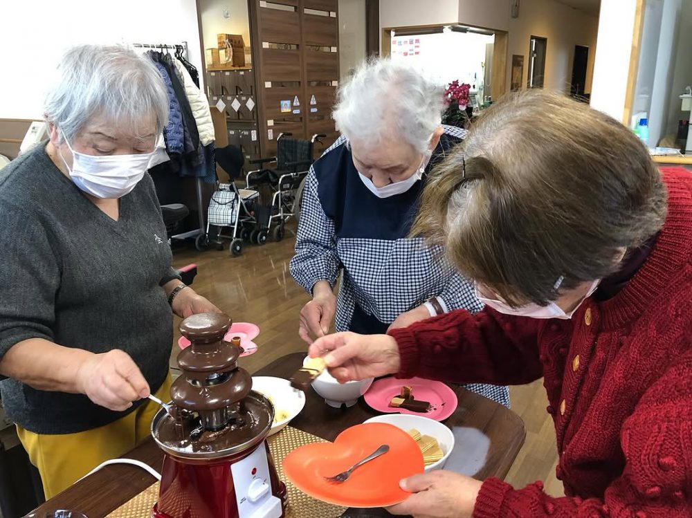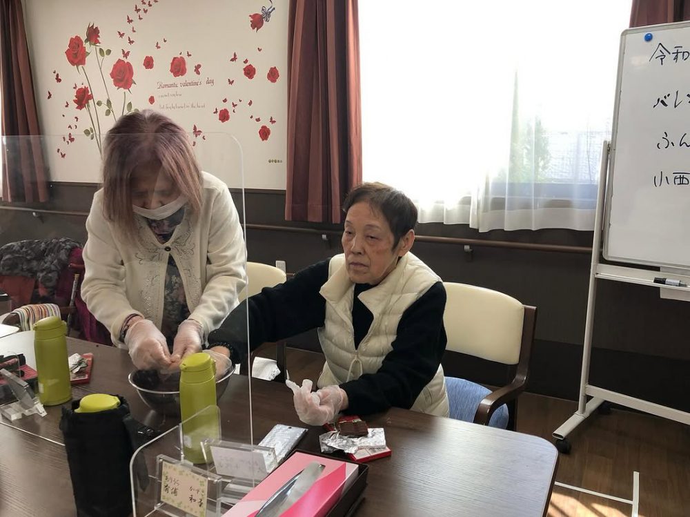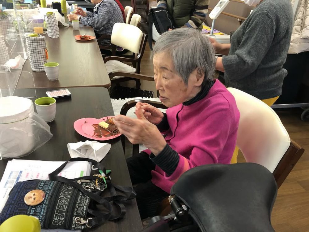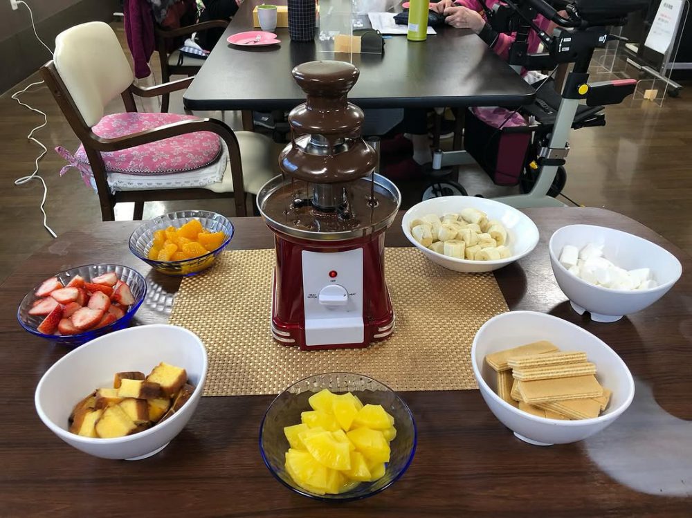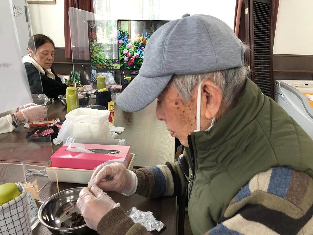 チョコレートを細かく砕くのに、真剣な皆さん。