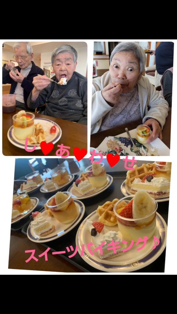 ふなばし翔裕館グループホームです! お誕生日&スイーツバイキング! あま~いスイーツがたくさん♥ 美味しいお顔