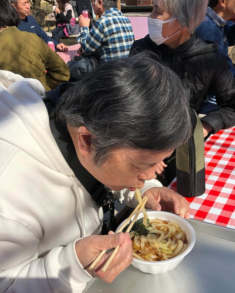 梅の花は、まだ満開とは言えず、少し寂しかったですが、屋台の焼きそばや、焼きまんじゅうなどを皆さん美味しそうに、食べられてお顔は、満開になっていました。