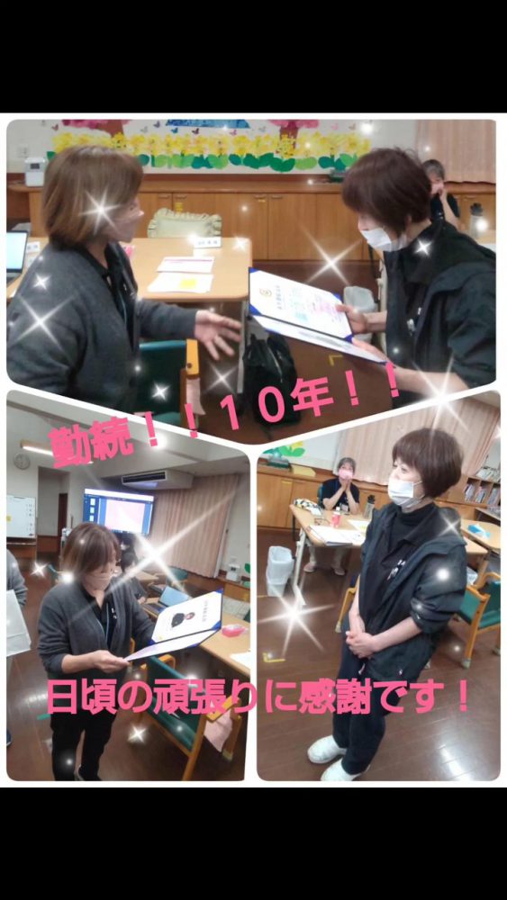 ふなばし翔裕館グループホームです! 勤続10年の職員が表彰されました。 日々利用者様のことを想い沢山の事に気付いてくれるベテランさん!感謝です!これからも宜しくお願いします(#^.^#)