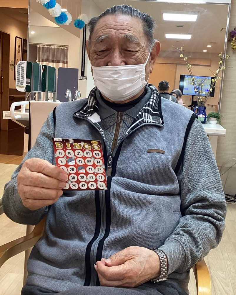 毎月恒例ビンゴ大会のご紹介です!! デイサービスでは月末にビンゴ大会を開催しております! 景品には加湿器や高級まくらなど豪華な景品を用意しています 今月の豪華賞品は誰の手に…!!