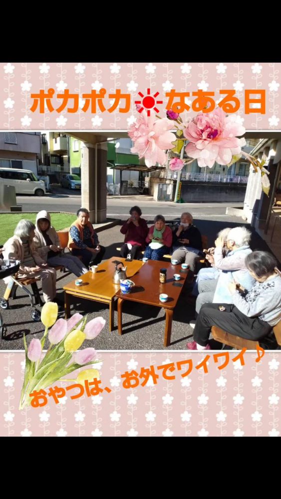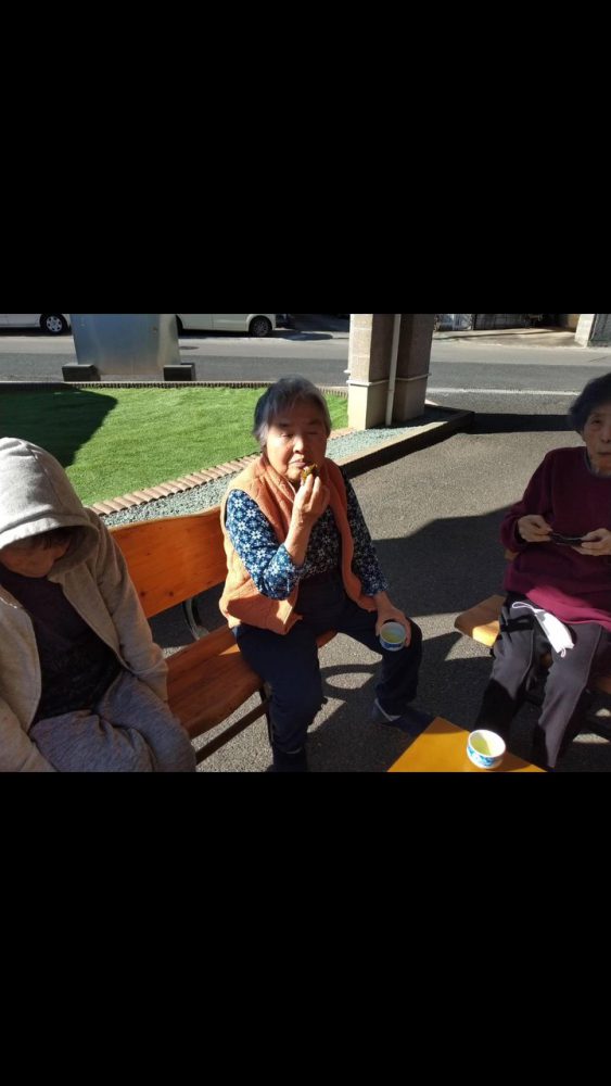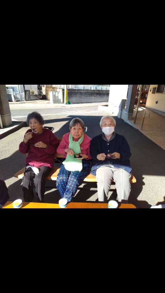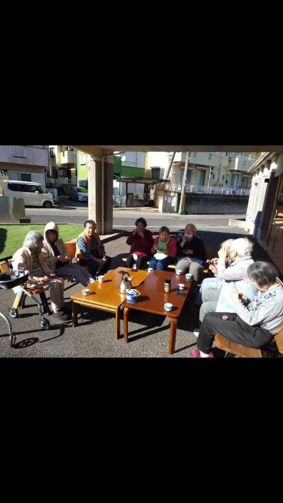 ふなばし翔裕館グループホームです! 暖かい日には、お外でおやつタイム!おしゃべりしながら皆でワイワイヽ(^。^)ノ