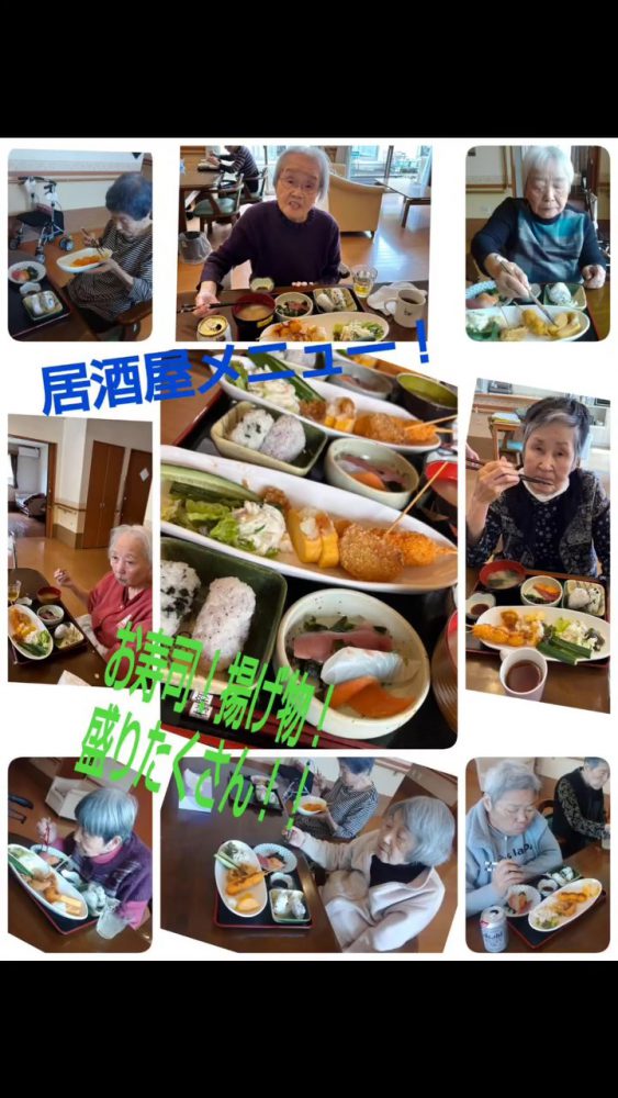 ふなばし翔裕館グループホームです! 居酒屋ランチを開催しました! 日頃は、お出し出来ないお寿司に舌鼓 揚げ物も大好評でした!