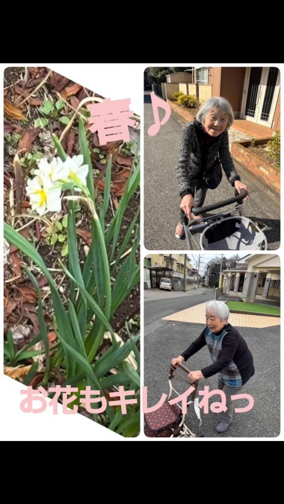 暖かい日には、お散歩へ さくらの花を見つけ思わず笑顔がこぼれますヽ(^。^)ノ