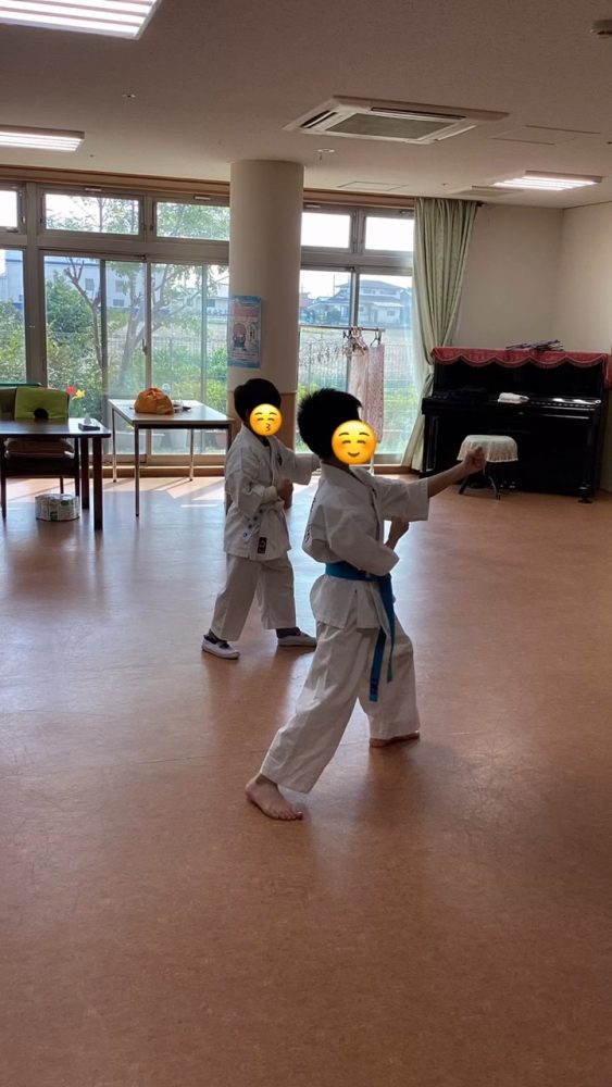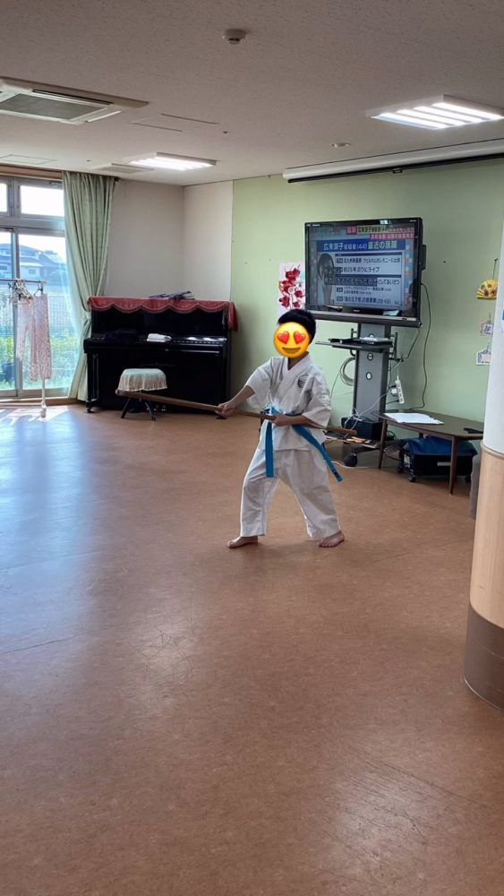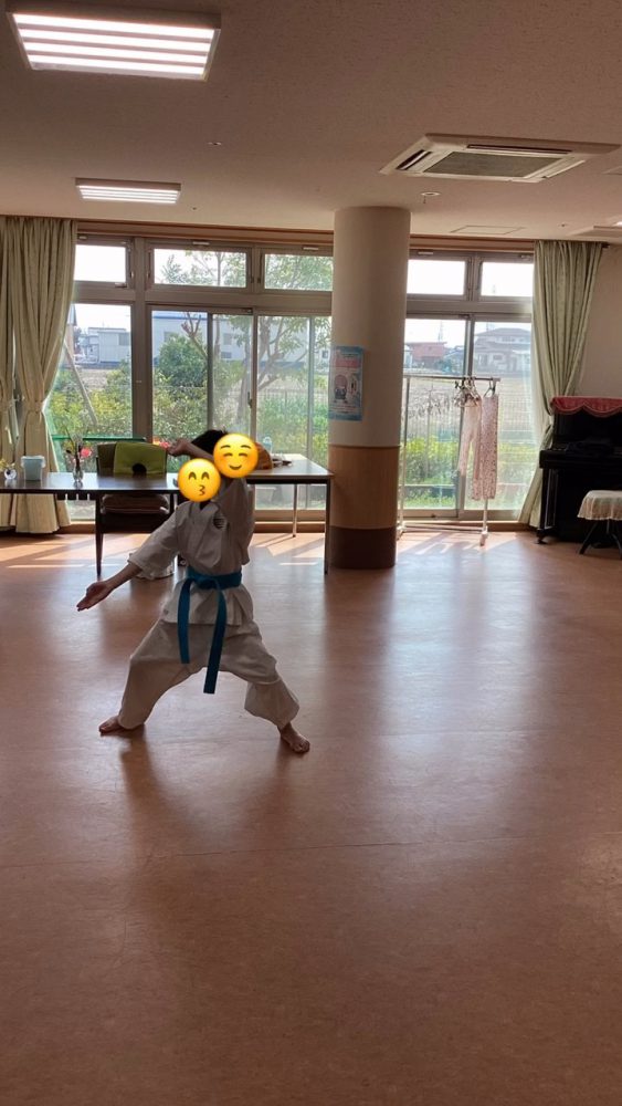 道着を着て空手を見せてくれました。