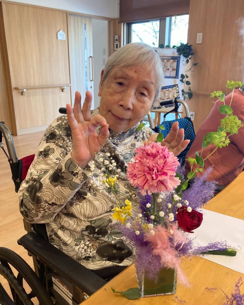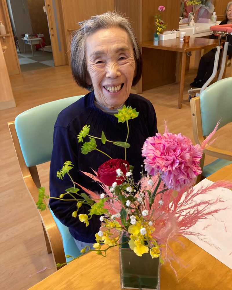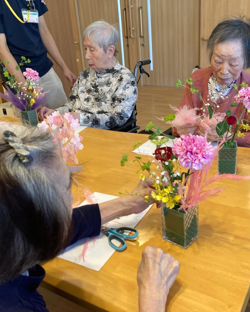 母の日も近いのでカーネーションをメインにススキの穂なども入れて可愛らしい作品ができました。