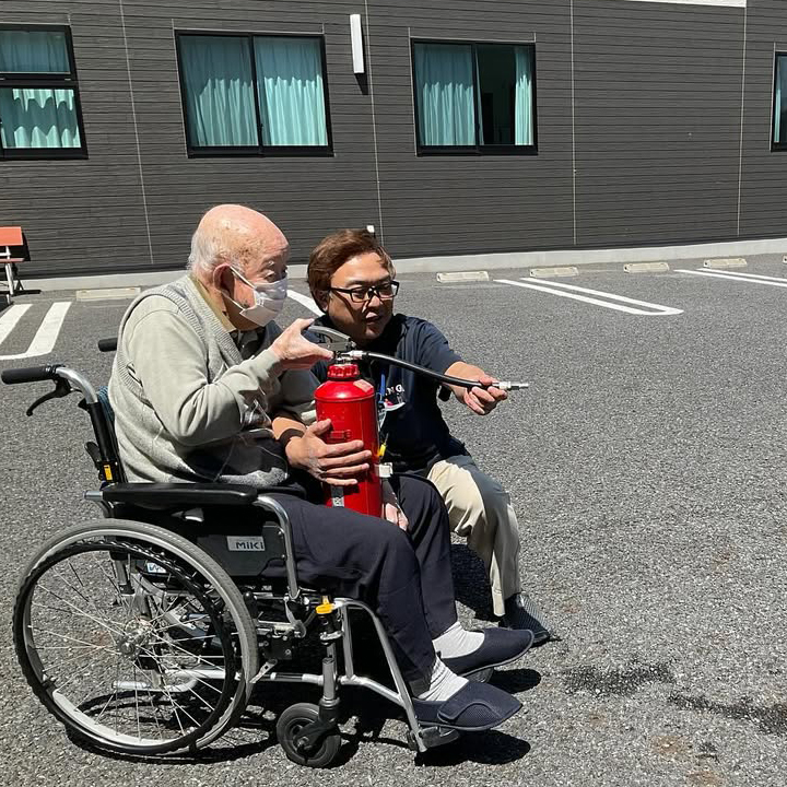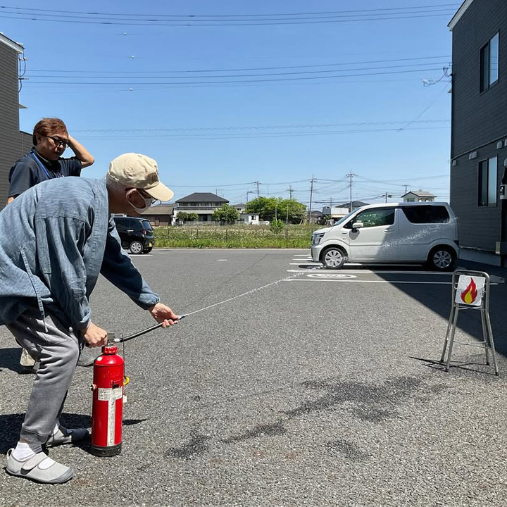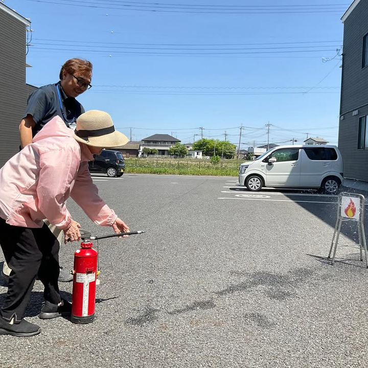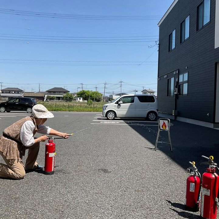 消化器の使用方法から、実際に消化器を使って、練習を皆さんで行いました!