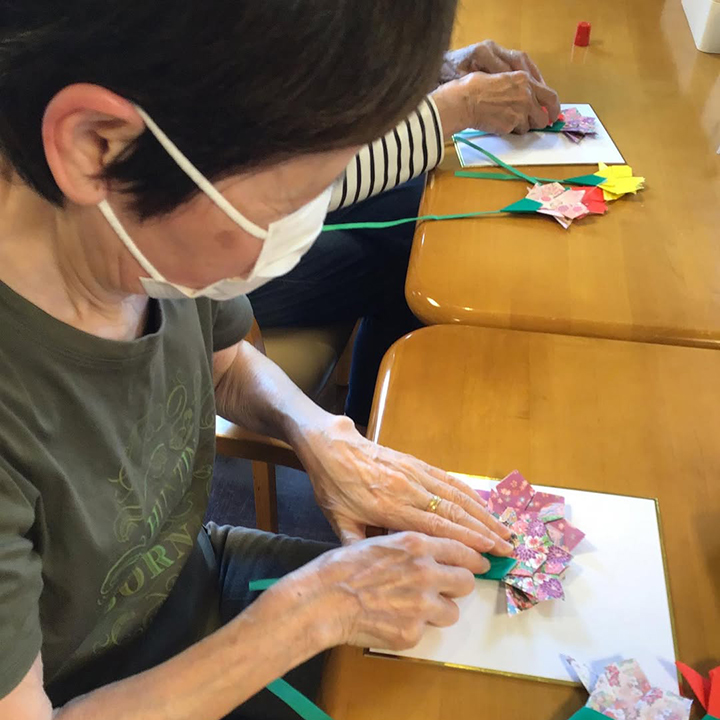 花選びや色紙を選び見本を見ながら周りの方達とワイワイしながら作られました。
