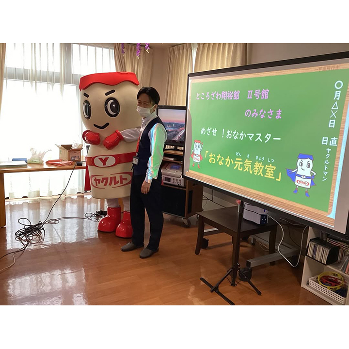 本日はヤクルトマンがやってきました! おなか元気教室ではクイズを交え身体が健康になるお話をして下さいました