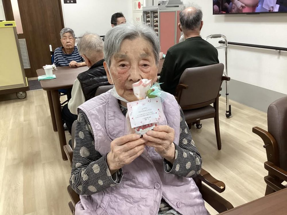 先日母の日にちなんで、皆様にささやかですが施設より贈り物をさせていただきました 皆様、これからもどうぞよろしくお願い致します