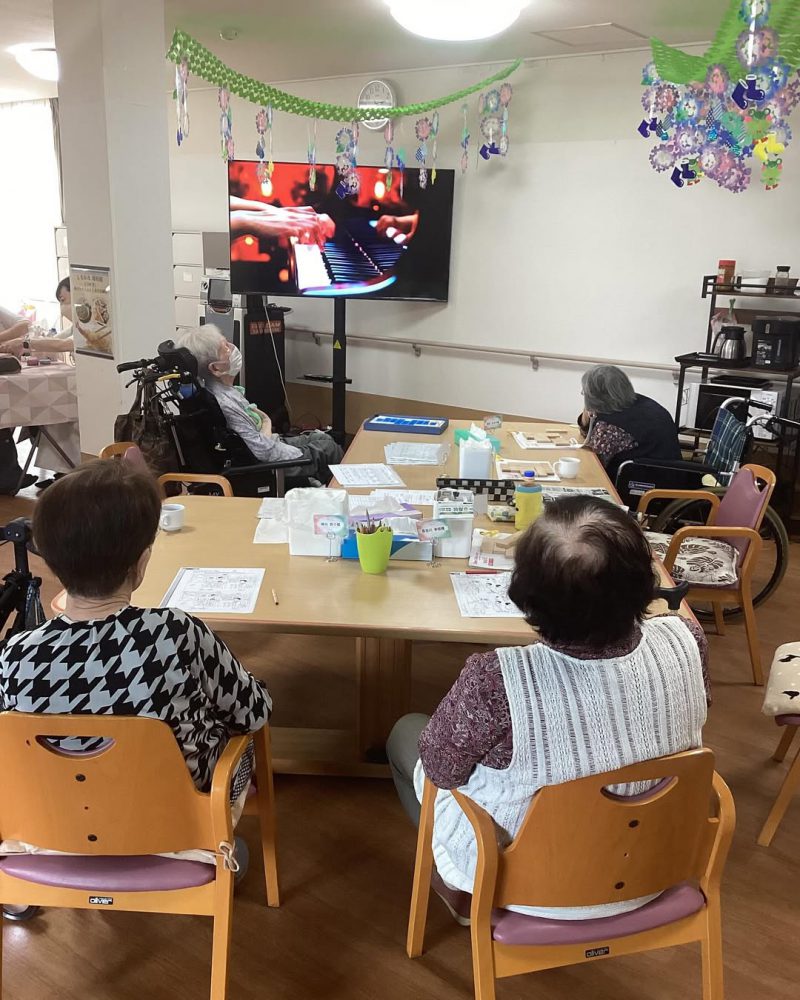 真剣にピアノ演奏を聞かれておりました それぞれリハビリパズルや間違い探しをしながら、優雅なひと時を過ごされました