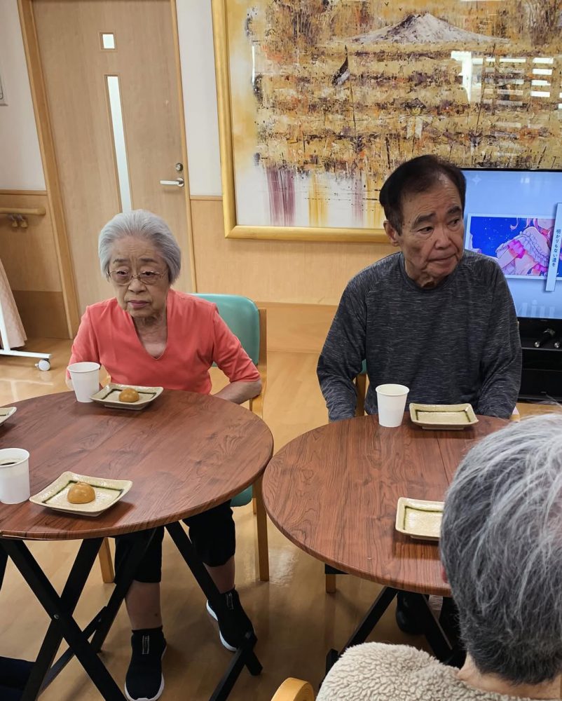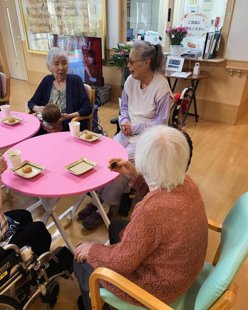 浦和さくら翔裕館 初夏らしい天気ですね〜 いかがお過ごしですか? 本日も、喫茶さくらオープンしました。 色々な話題が飛び交ってますよ〜 おやつは一口のお饅頭 みなさん楽しそうです♪