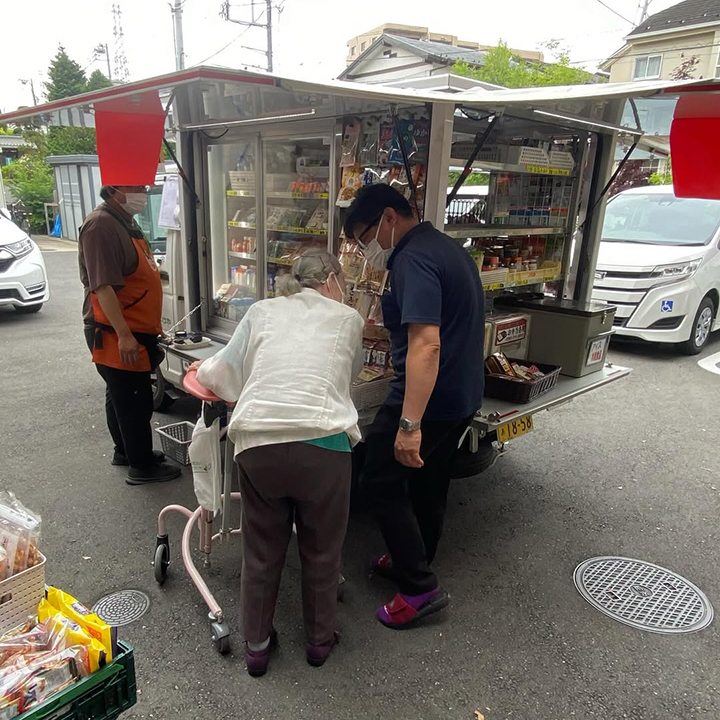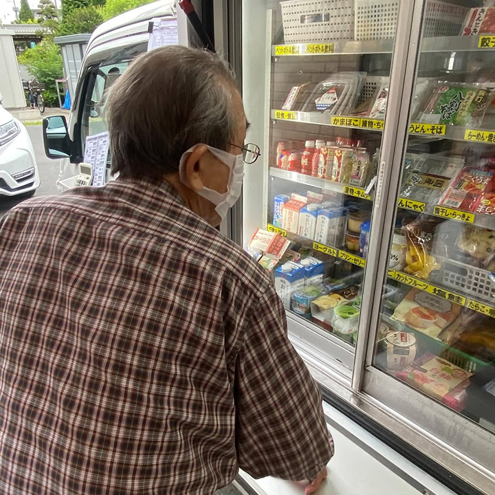 毎週来ていただいている移動スーパーでお買い物されている様子です