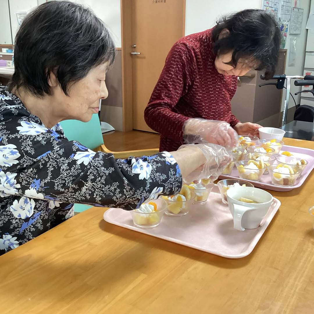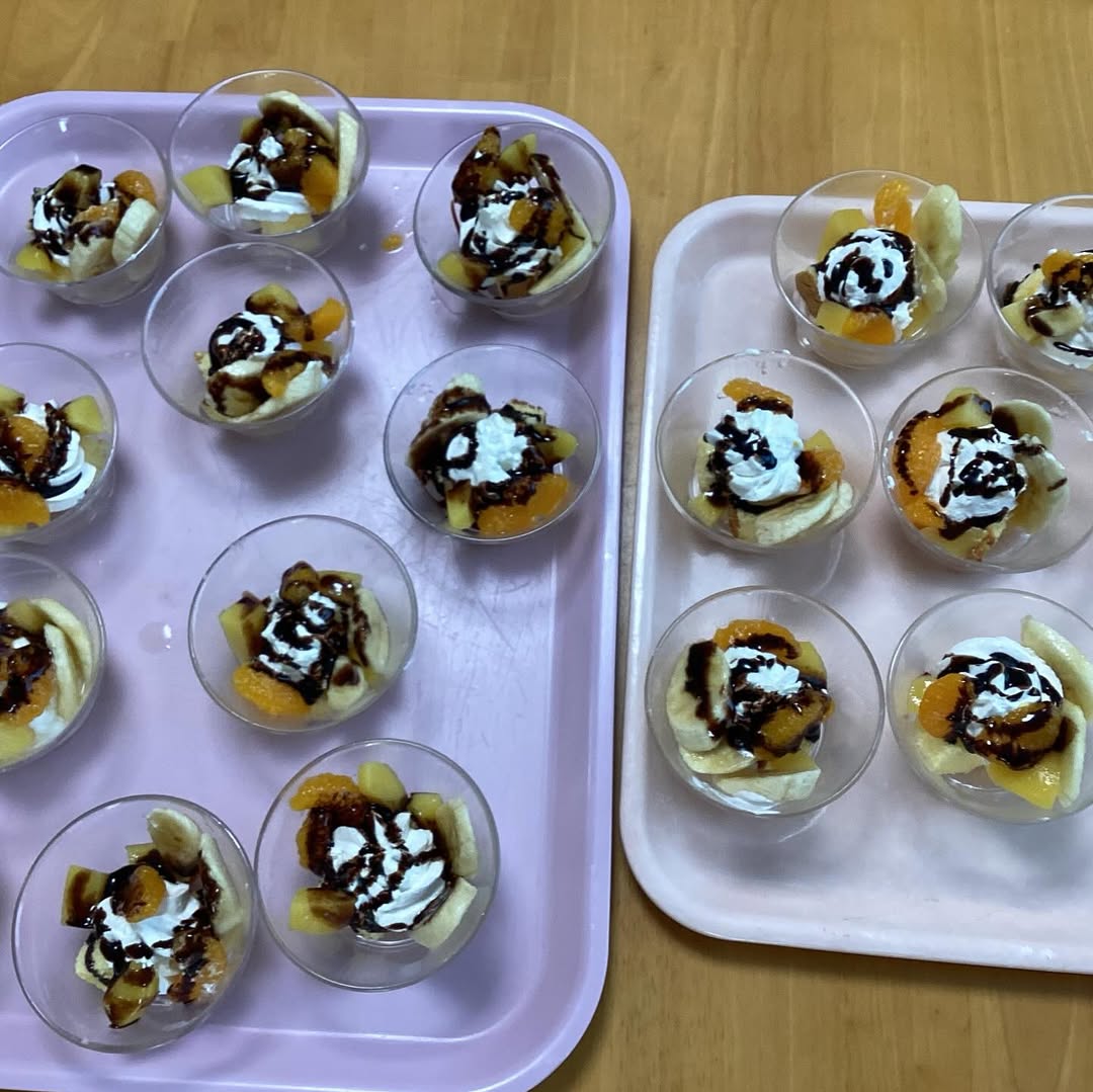 本日5月の4週目のおやつアクティビティはプチパフェを皆様と作りました。