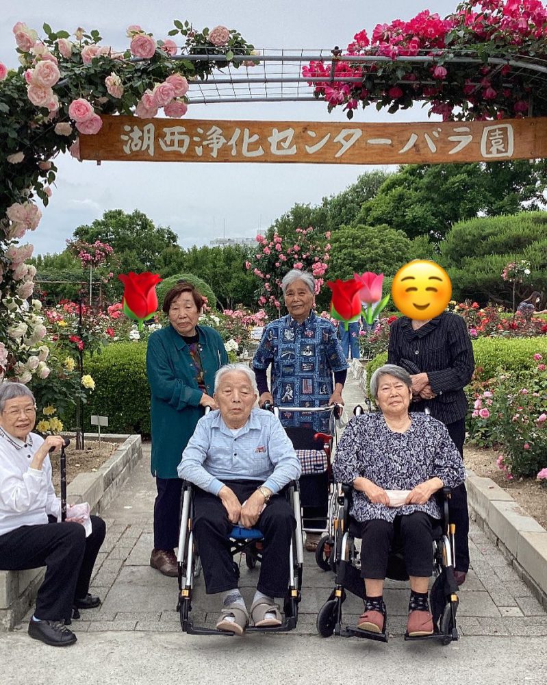 色とりどりのバラを見て、「こんな色のバラもある!」「バラの良い香りがするわ〜」と皆さん楽しまれていました