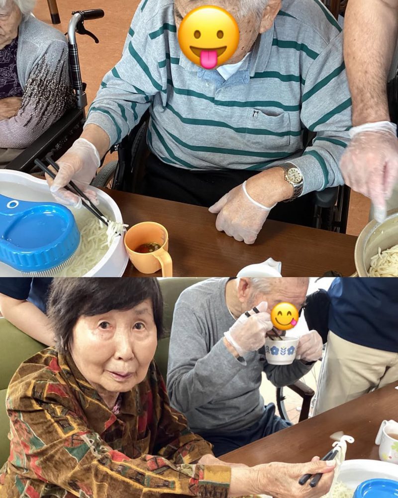 今日はおやつの時間で流しそうめん ならぬ 流しうどんをしました! ご利用者の皆様には美味しいとたくさん召し上がられていました