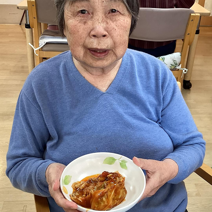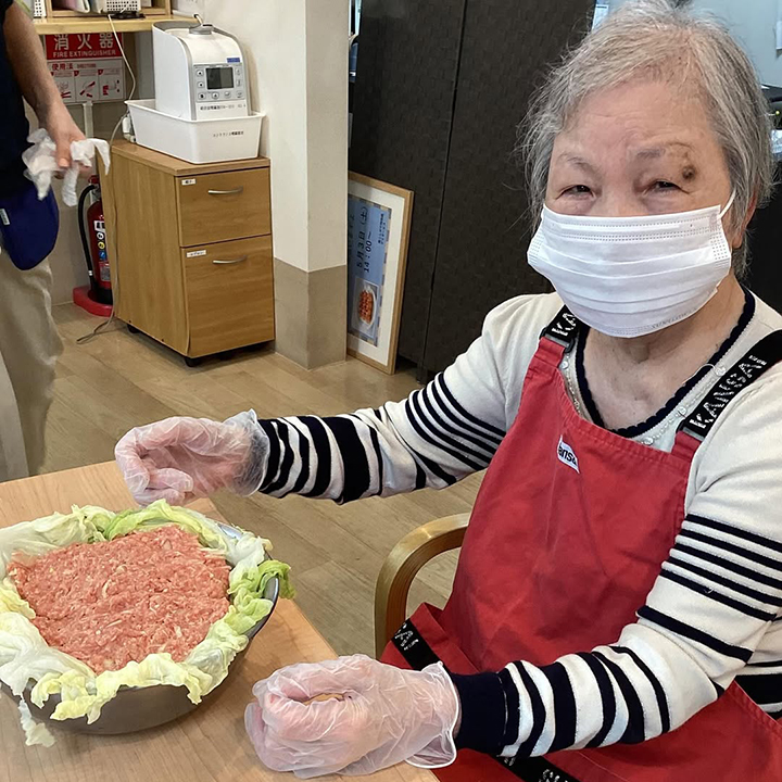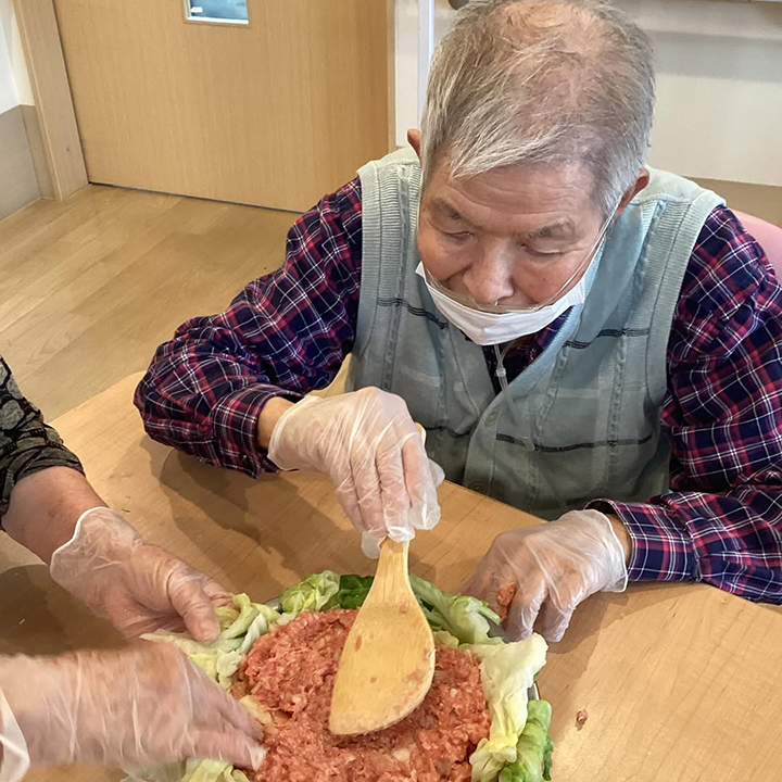 ひき肉をキャベツで包み、