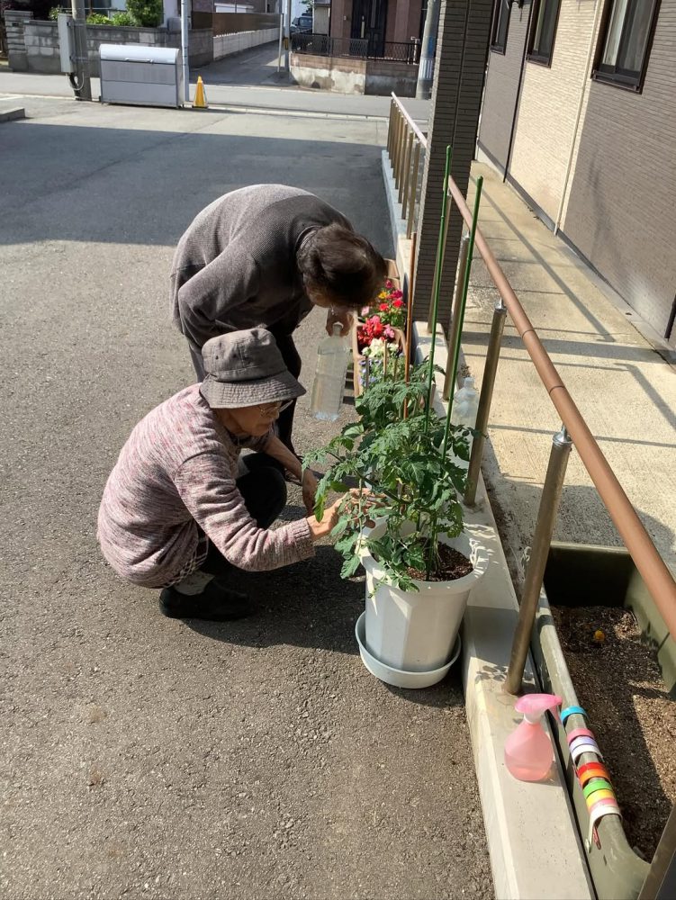暑い日が続いておりますが ご利用者様が定期的に水やりを してくれているおかげで順調に 草花が育っております。 トマトも順調に葉をつけており 収穫が楽しみです♪