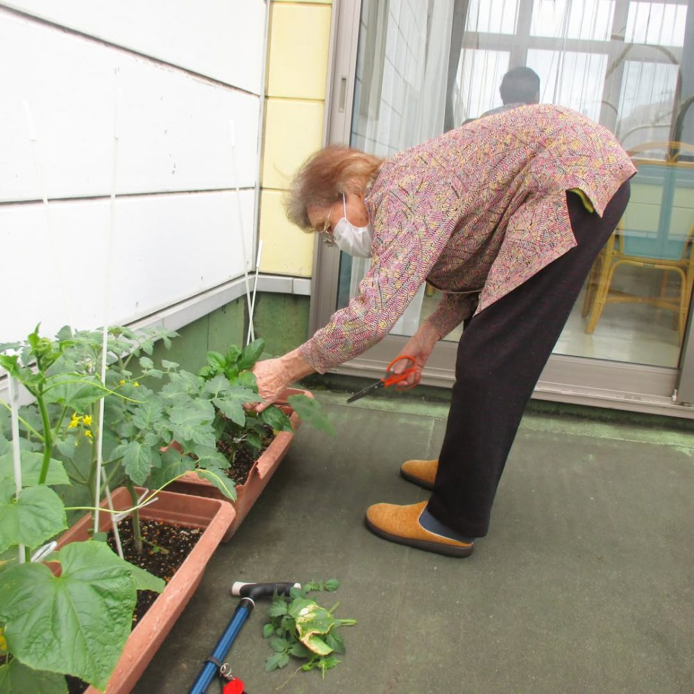 ご利用者様と一緒に夏野菜の剪定を行いました
