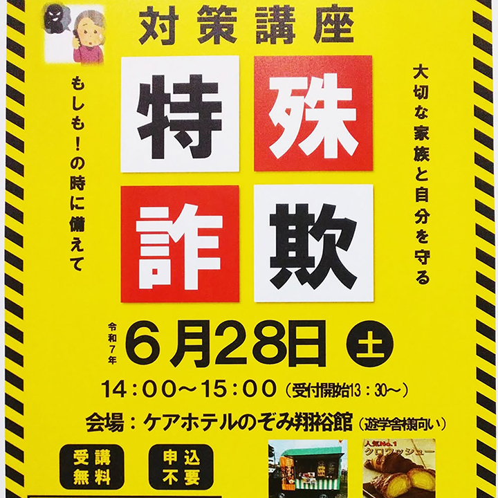 この度、東警察署様を講師にお迎えして、特殊詐欺対策講座を開きます