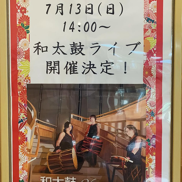 暑いですね〜 個人的に冷やし中華が食べたいと 思っていたら‥‥ なんと検食が冷やし中華でした♡ 皆様いかがお過ごしですか? さてさて‥‥ 来月のイベント情報です。 和太鼓ライブを予定してます。 盛り上がりましょう