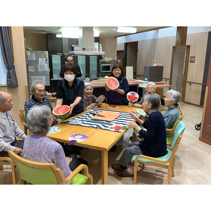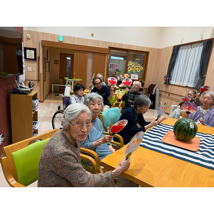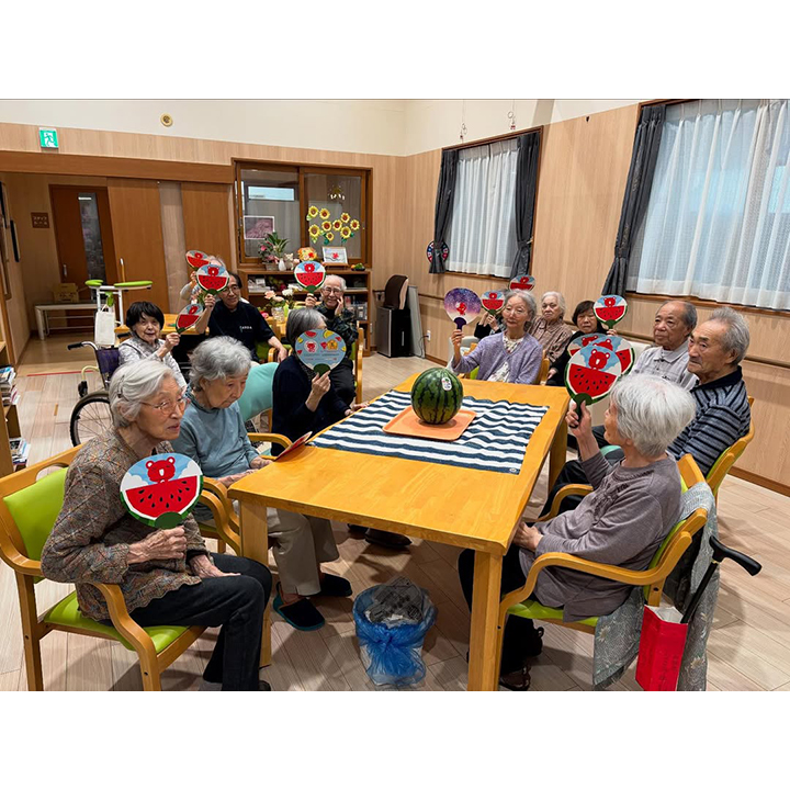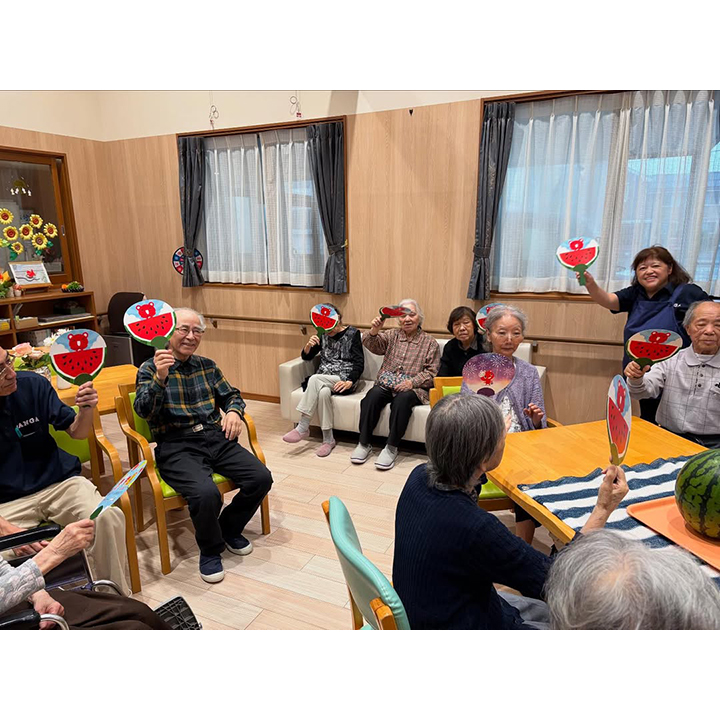 「夏を感じるなあ」、「スイカの絵も美味しそうだ」と皆様喜んで扇いでいました。