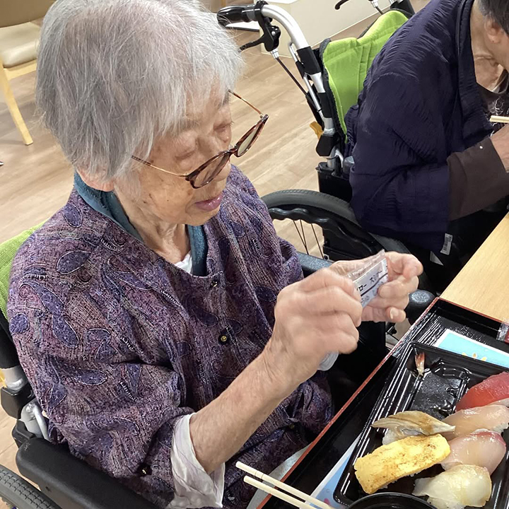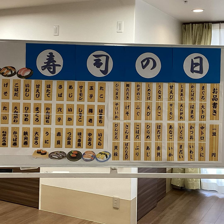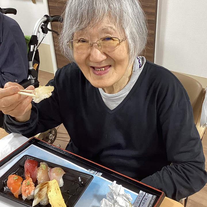 リクエストをするといつも上位に上がるお寿司をランチに皆様に召し上がって頂きました。