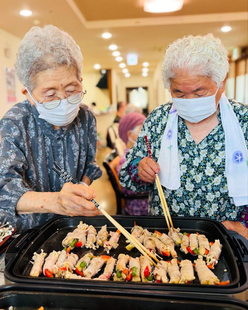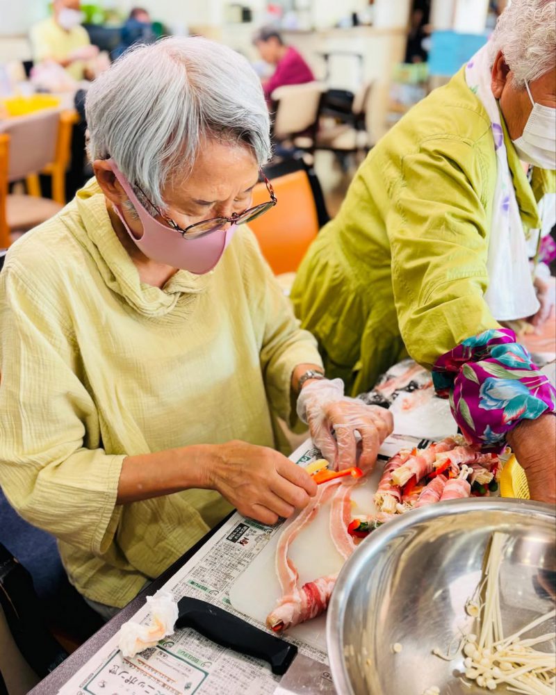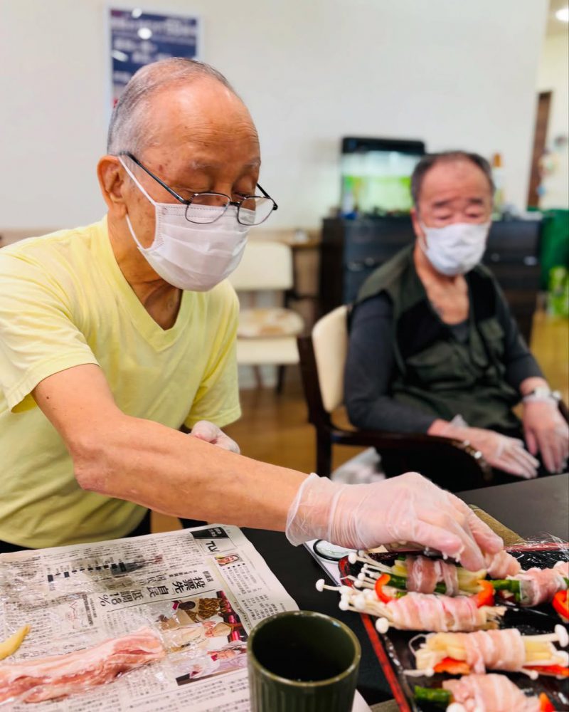 調理レクを行いました 今回は【肉巻き】 切る、巻く、焼く 全部ご利用者様にお任せです スタッフは食べるだけw