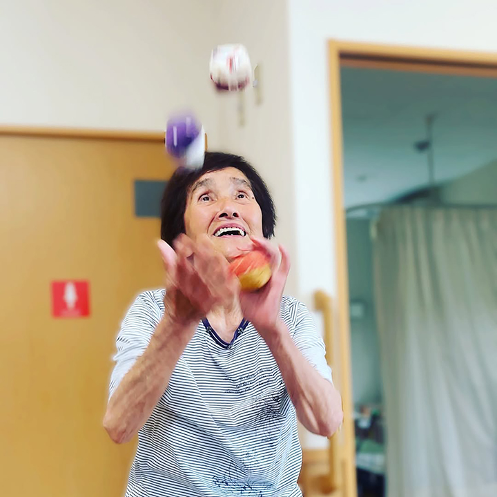 食後のフリータイムは、 お手玉やトランプでワイワイタイム