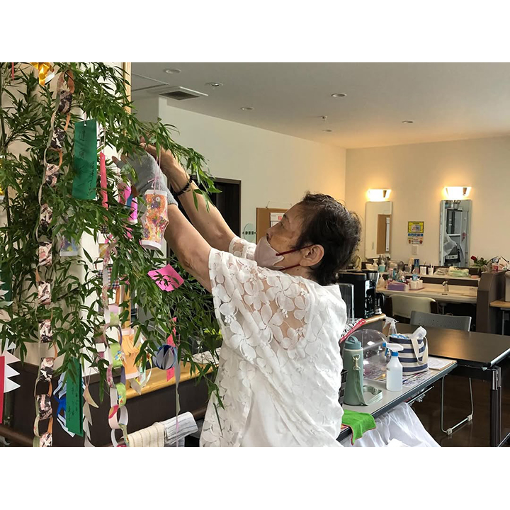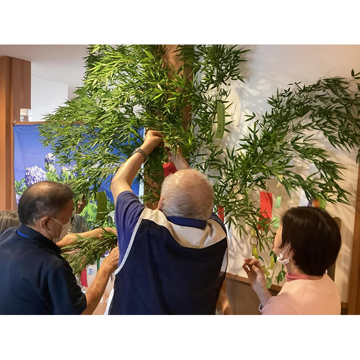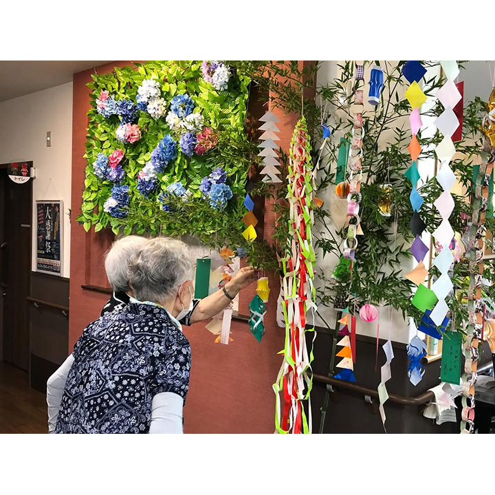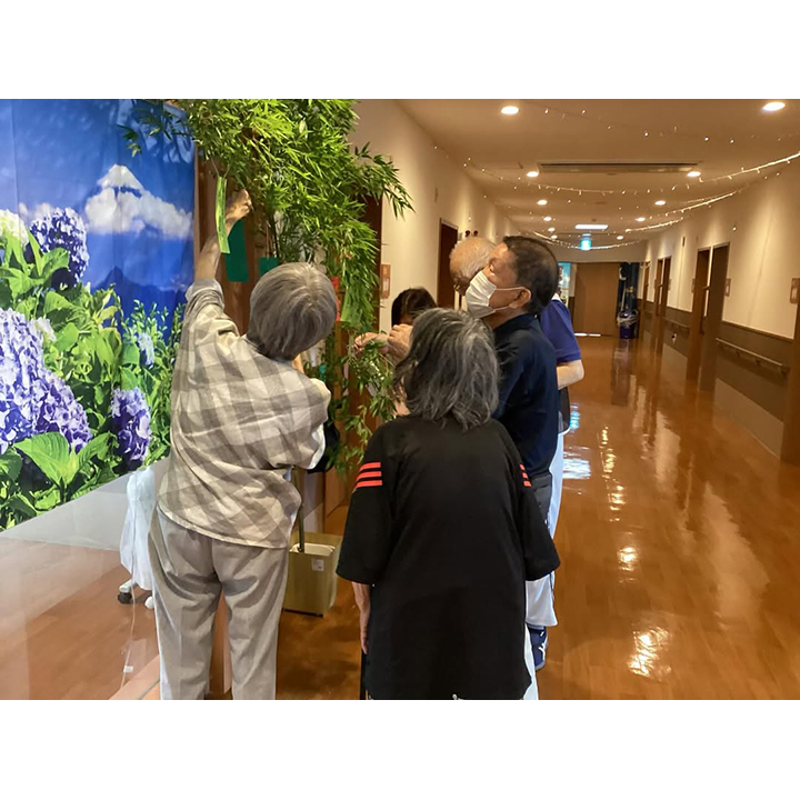 もうすぐ七夕と言う事で皆様に短冊を書いて頂き飾り付けをしました。
