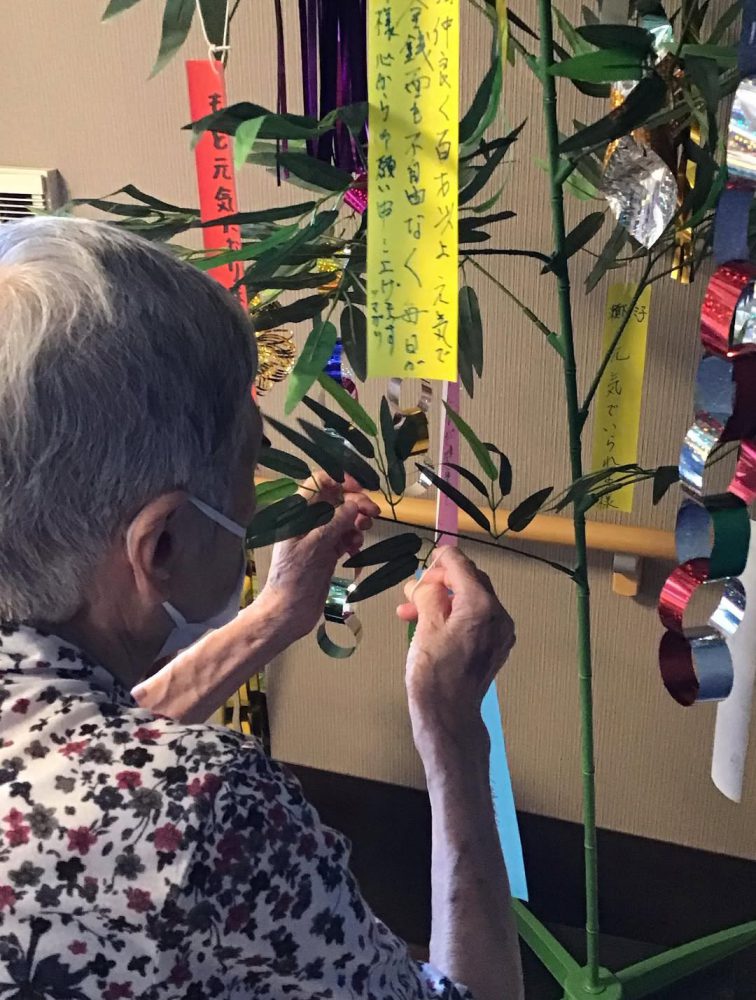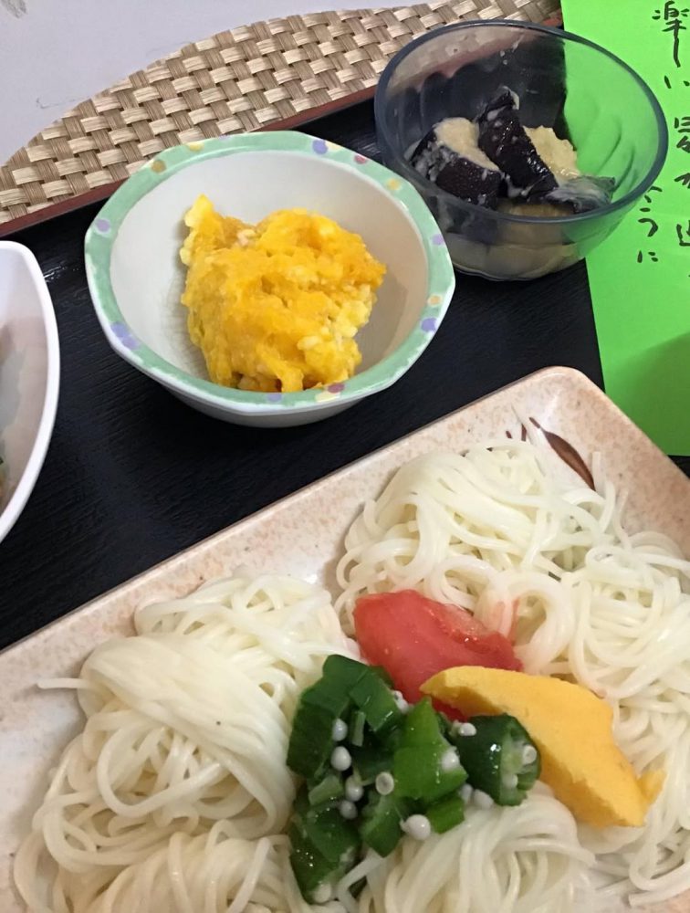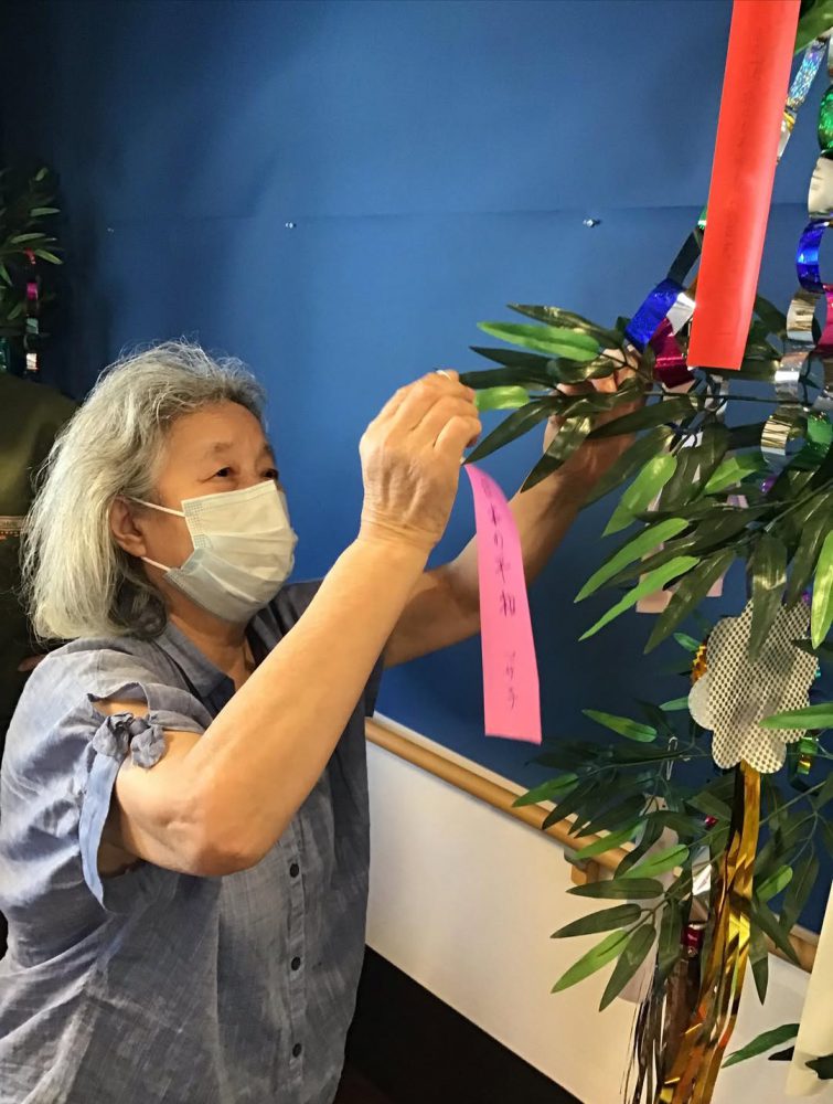 7月7日 皆様短冊に色々な願い事を書いて、叶います様にと祈りながら笹に吊るしました。 七夕と言えばそうめん。つるつると啜りながら暑さを吹き飛ばします。