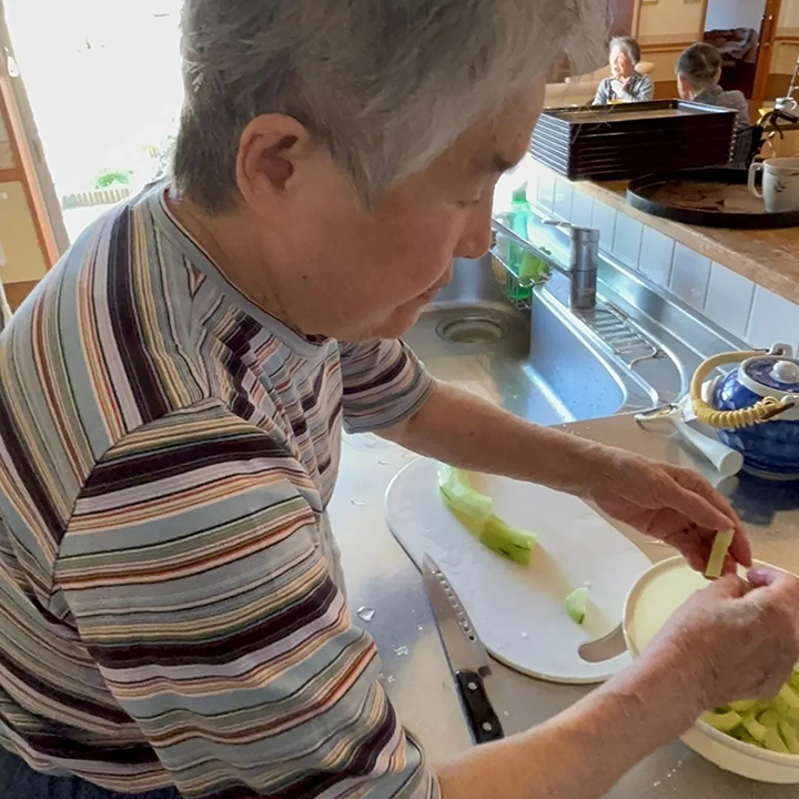 なばし翔裕館グループホームです! 家庭菜園の採れたてキュウリをお味噌汁にしてもらいました!