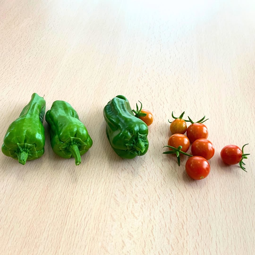 今回は、食べごろになったピーマンとミニトマトを収穫しました