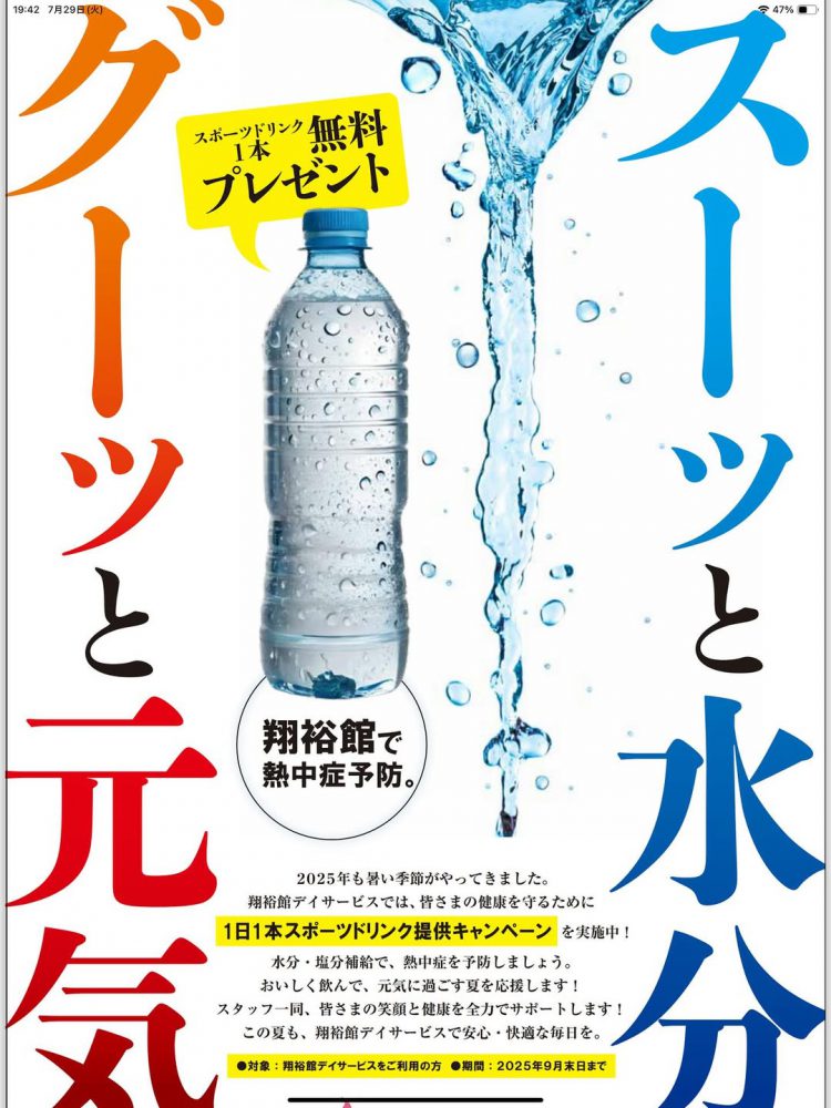 1日1本スポーツドリンク提供キャンペーンを実施します!