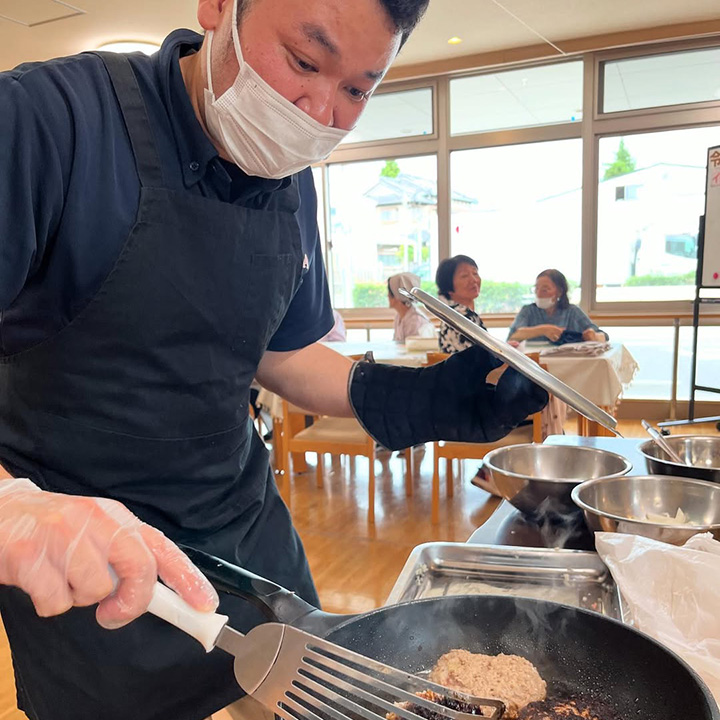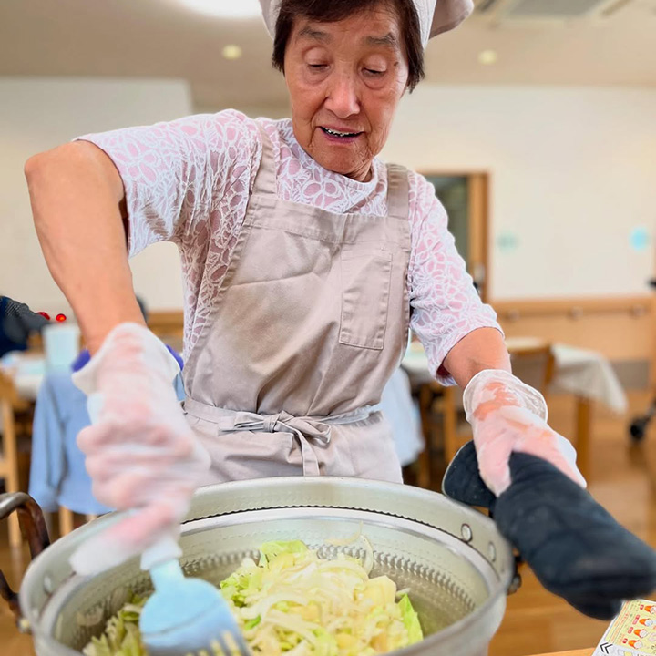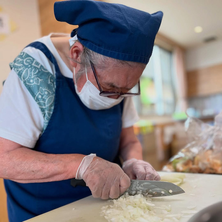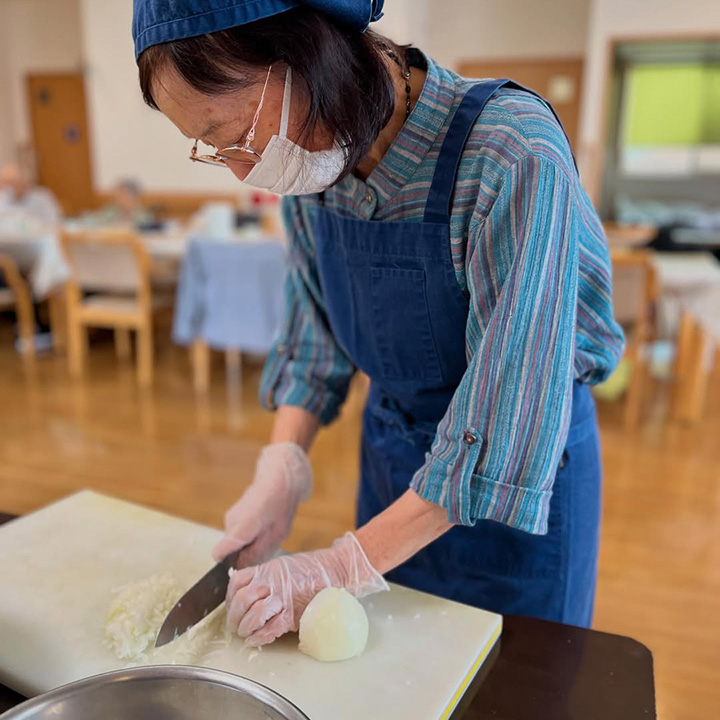 利用者さんと一緒に切って、混ぜて、焼いて…
