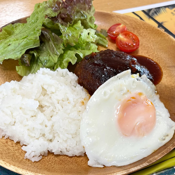 ふわふわ柔らかなハンバーグに、とろ〜り半熟卵をオン