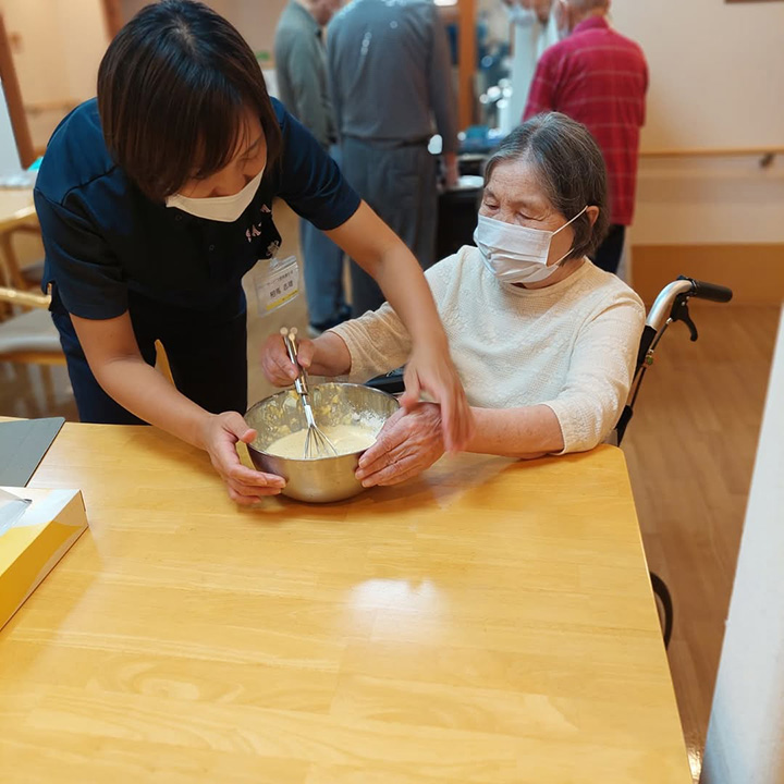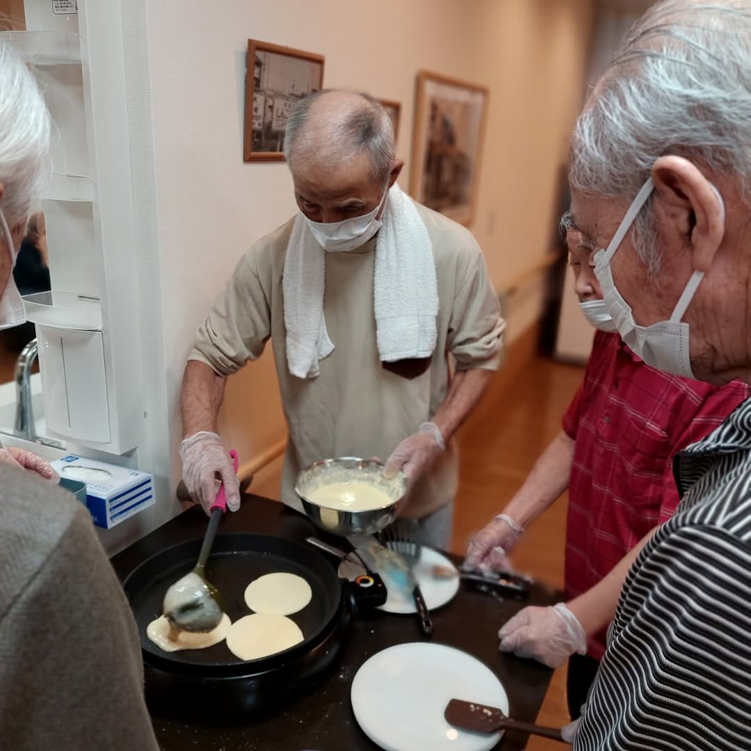南こしがや翔裕館❤住宅型有料老人ホーム❤ 午後のアクティビティは ホットケーキ作り